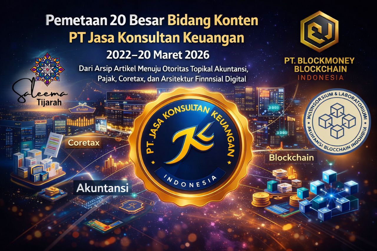 PEMETAAN 20 BESAR BIDANG KONTEN PT JASA KONSULTAN KEUANGAN 2022–20 MARET 2026 DARI ARSIP ARTIKEL MENUJU OTORITAS TOPIKAL AKUNTANSI, PAJAK, CORETAX, DAN ARSITEKTUR FINANSIAL DIGITAL PENULIS: WIDI PRIHARTANADI PENERBIT: PT JASA KONSULTAN KEUANGAN Kategori https://jasakonsultankeuangan.co.id/category/article saat ini terlihat memiliki 132 halaman pagination. Halaman pertama menampilkan 10 artikel, dan halaman terakhir yang terindeks, Page 132, juga […]