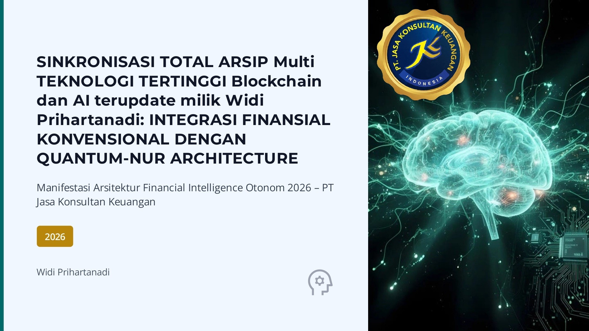 SINKRONISASI TOTAL ARSIP MULTI TEKNOLOGI TERTINGGI BLOCKCHAIN DAN AI TERUPDATE MILIK WIDI PRIHARTANADI: INTEGRASI FINANSIAL KONVENSIONAL DENGAN QUANTUM-NUR ARCHITECTURE MANIFESTASI ARSITEKTUR FINANCIAL INTELLIGENCE OTONOM 2026 – PT JASA KONSULTAN KEUANGAN